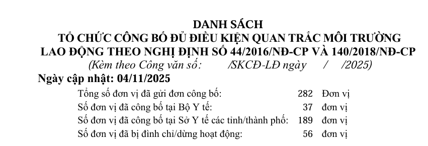 III. Đơn vị bị đình chỉ, dừng hoạt động quan trắc môi trường lao động (QTMTLĐ)