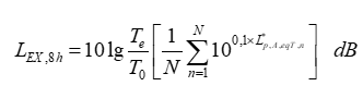 Mức (tiếng ồn nghề nghiệp), tính theo dexiben, được xác định theo công thức:
