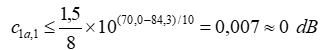 Độ không đảm bảo thành phần, c1u1, từ Bảng C.4 với N = 6 và u1 = 1,65 dB là: c1u1 = 1,0 dB.