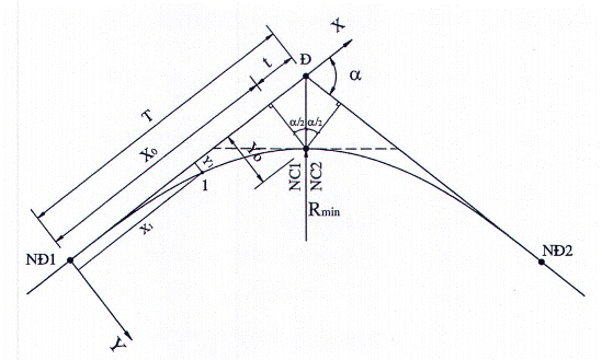 Tọa độ điểm cuối của đường cong chuyển tiếp (X0, Y0) ứng với chiều dài S=Lct.