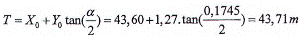 - Tính được các tiếp tuyến T1 = 45.83 m và T2 = 41.59 m