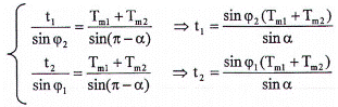 Xác định t1 và t2 từ định lý hàm số sin trong tam giác AĐB: