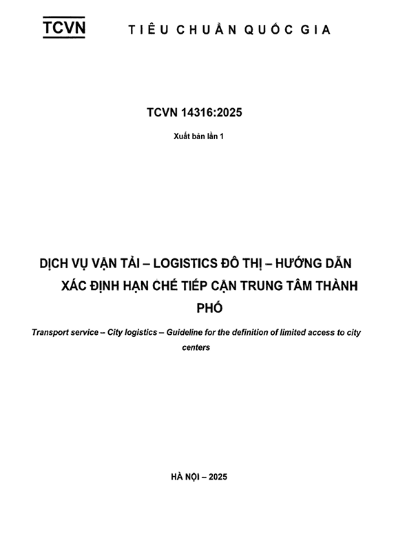 Tiêu chuẩn TCVN 14316:2025 Dịch vụ vận tải - Logistics đô thị - Hướng dẫn hạn chế tiếp cận trung tâm thành phố