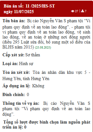 Hưng Yên: Bản án số 11 2025/HS-ST ngày 11/07/2025 của Tòa án nhân dân khu vực 5