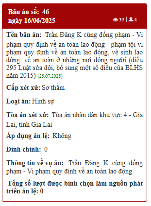 Gia Lai: Bản án số 46 ngày 16/06/2025 của Tòa án nhân dân khu vực 4