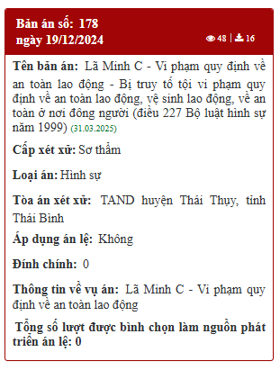 Thái Bình: Bản án số 178 ngày 19/12/2024 của TAND huyện Thái Thụy