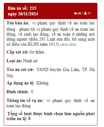 Hà Nội: Bản án số 215 ngày 26/11/2024 của TAND huyện Gia Lâm