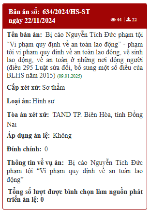 Đồng Nai: Bản án số 634/2024/HS-ST ngày 22/11/2024 của TAND TP. Biên Hòa