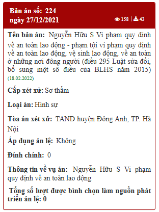 Hà Nội: Bản án số 224 ngày 27/12/2021 của TAND huyện Đông Anh