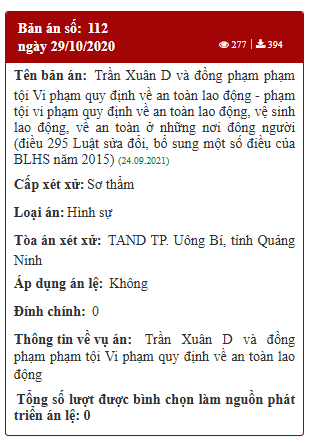 Quảng Ninh: Bản án số 112 ngày 29/10/2020 của TAND TP. Uông Bí