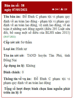 Đồng Nai: Bản án số 58 ngày 07/05/2021 của TAND huyện Tân Phú