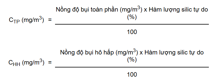 - CHH (mg/m3): Nồng độ silic tự do trong bụi hô hấp, đơn vị mg/m3
