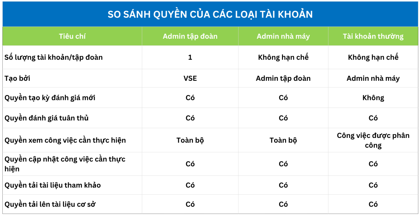 - Cấp admin tập doàn: dành cho doanh nghiệp có từ 2 nhà máy trở lên. Số lượng 01