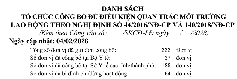 III. Đơn vị bị đình chỉ, dừng hoạt động quan trắc môi trường lao động (QTMTLĐ)