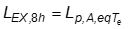 Mức tiếp xúc tiếng ồn hàng ngày trọng số A, LEX,8h , lấy từ Công thức (13). Khoảng thời gian làm việc thực trong ngày, Te = 9,25 h và khoảng thời gian chuẩn là 8 h.