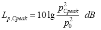 Mười lần logarit cơ số 10 của tỷ số của bình phương mức áp suất âm đỉnh trọng số C, pCpeak, chia cho bình phương giá trị mức áp suất âm chuẩn, p0, tính theo dexiben.