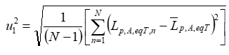 Độ không đảm bảo chuẩn trung bình của Lp,A,eqT, u1, lấy từ Công thức (C.12), tức là: