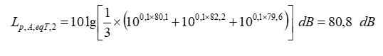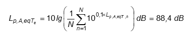 Sử dụng các giá trị từ Bảng F.1, kết quả là Lp,A,eqT,n = 89,5 dB.