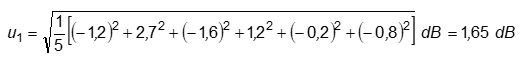 Độ không đảm bảo thành phần, c1u1, từ Bảng C.4 với N = 6 và u1 = 1,65 dB là: c1u1 = 1,0 dB.