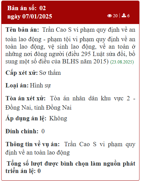 Đồng Nai: Bản án số 02 ngày 07/01/2025 của Tòa án nhân dân khu vực 2 - Đồng Nai