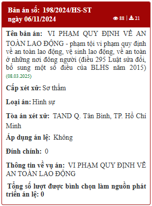 Hồ Chí Minh: Bản án số 198/2024/HS-ST ngày 06/11/2024 của TAND Q. Tân Bình