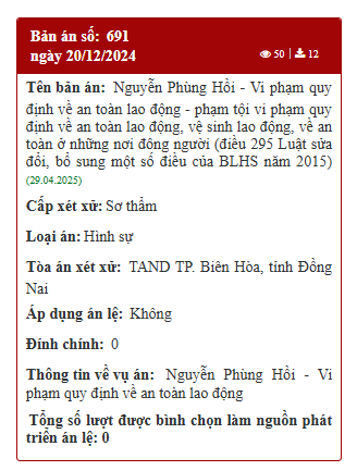Đồng Nai: Bản án số 691 ngày 20/12/2024 của TAND TP. Biên Hòa