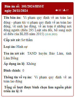 Lâm Đồng: Bản án số 101/2024/HSST ngày 26/11/2024 của TAND huyện Bảo Lâm