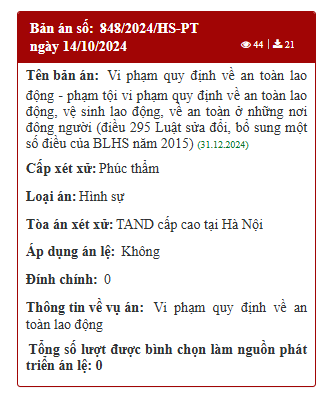 Hà Nội: Bản án số 848/2024/HS-PT ngày 14/10/2024 của TAND cấp cao
