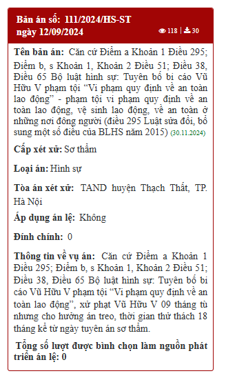 Hà Nội:Bản án số 111/2024/HS-ST ngày 12/09/2024 của TAND huyện Thạch Thất