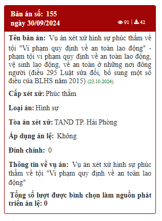 Hải Phòng: Bản án số 155 ngày 30/09/2024 của TAND