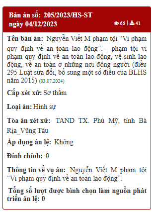 Bà Rịa-Vũng Tàu: Bản án số 205/2023/HS-ST ngày 04/12/2023 của TAND TX. Phú Mỹ