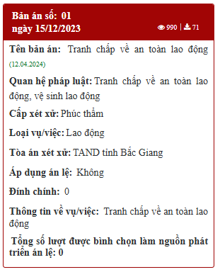 Bắc Giang: Bản án số 01 ngày 15/12/2023 của TAND