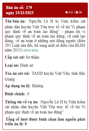 Bắc Giang: Bản án số 179 ngày 23/11/2023 của TAND huyện Việt Yên