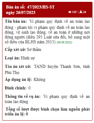 Phú Thọ: Bản án số 47/2023/HS-ST ngày 26/07/2023 của TAND huyện Thanh Sơn