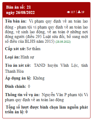 Thanh Hóa: Bản án số 21 ngày 26/08/2022 của TAND huyện Vĩnh Lộc