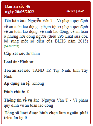Tây Ninh: Bản án số 46 ngày 20/05/2022 của TAND
