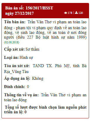 Bà Rịa-Vũng Tàu: Bản án số 156/2017/HSST ngày 27/12/2017 của TAND TX. Phú Mỹ