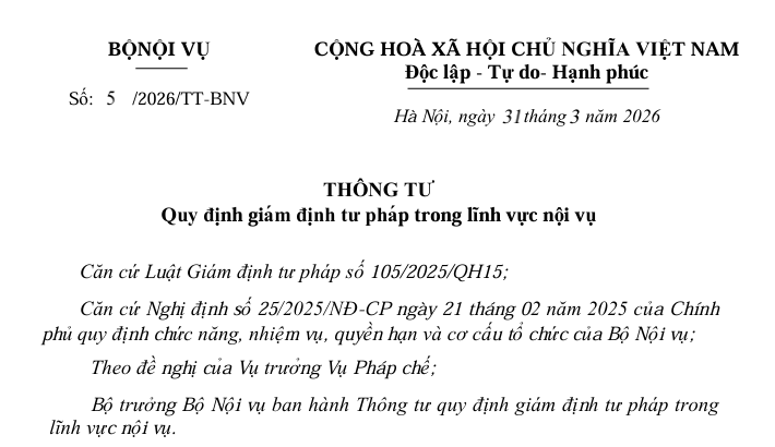 Thông tư này quy định chi tiết một số điều của Luật Giám định tư pháp về việc giám định tư pháp trong lĩnh vực nội vụ, bao gồm: